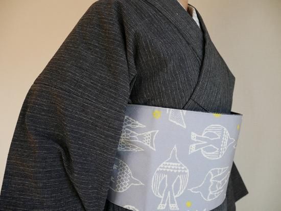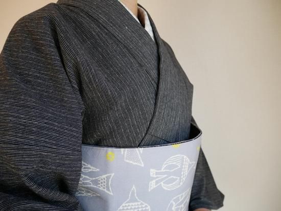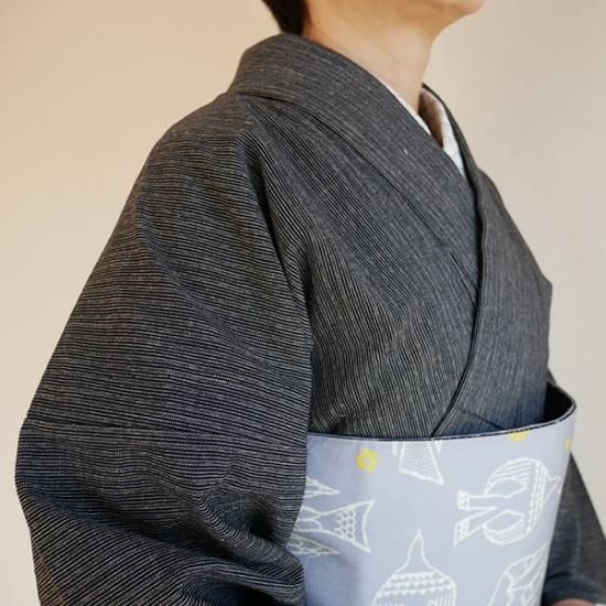 【反物:墨 亀田縞 反物のみor反物と仕立て】
