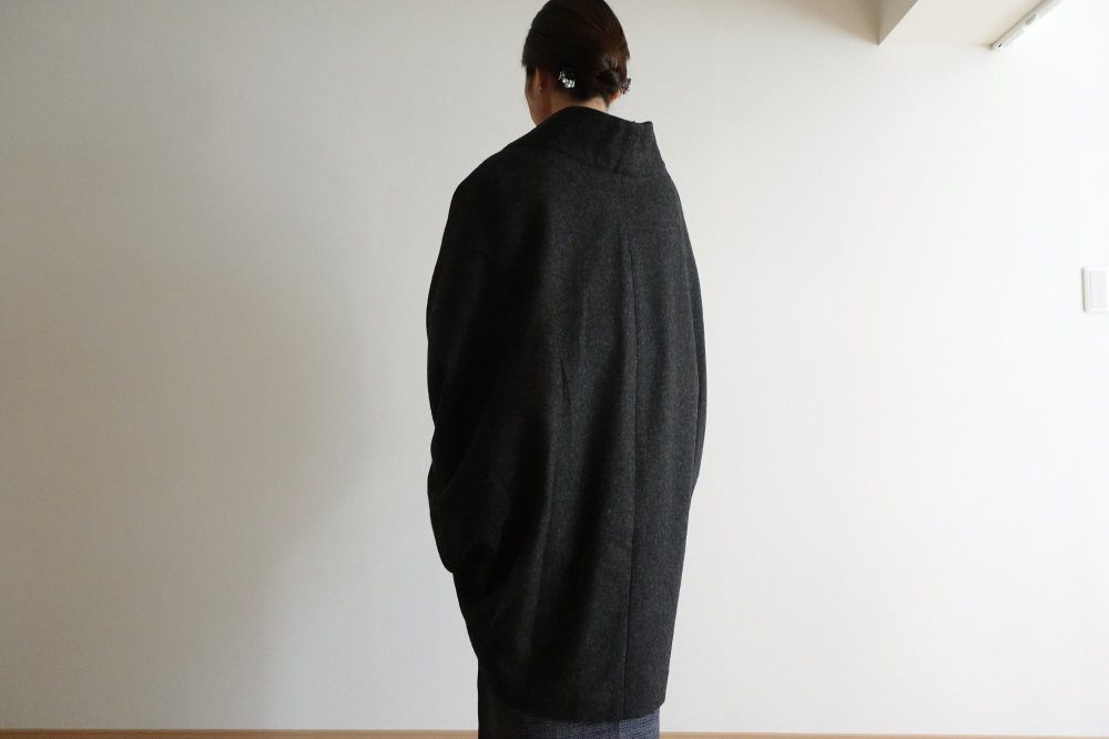 起毛仕上げの生地に織りを感じる生地でコートを作りました。
