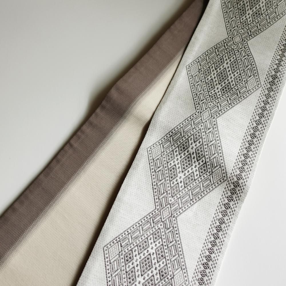 【商品名】菱縁 オフホワイト 近賢織物 半巾帯