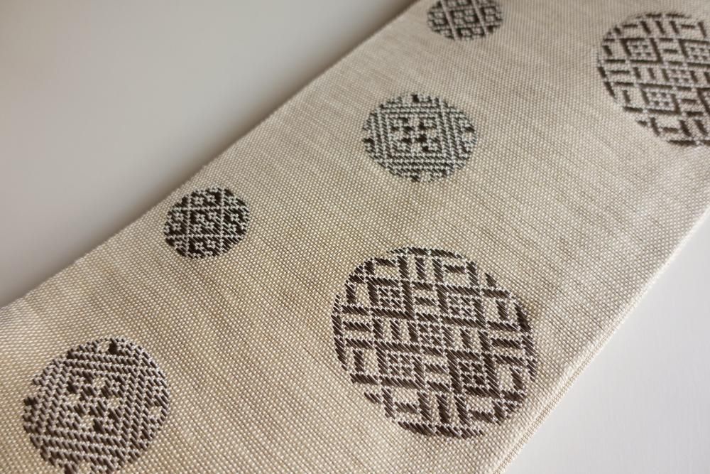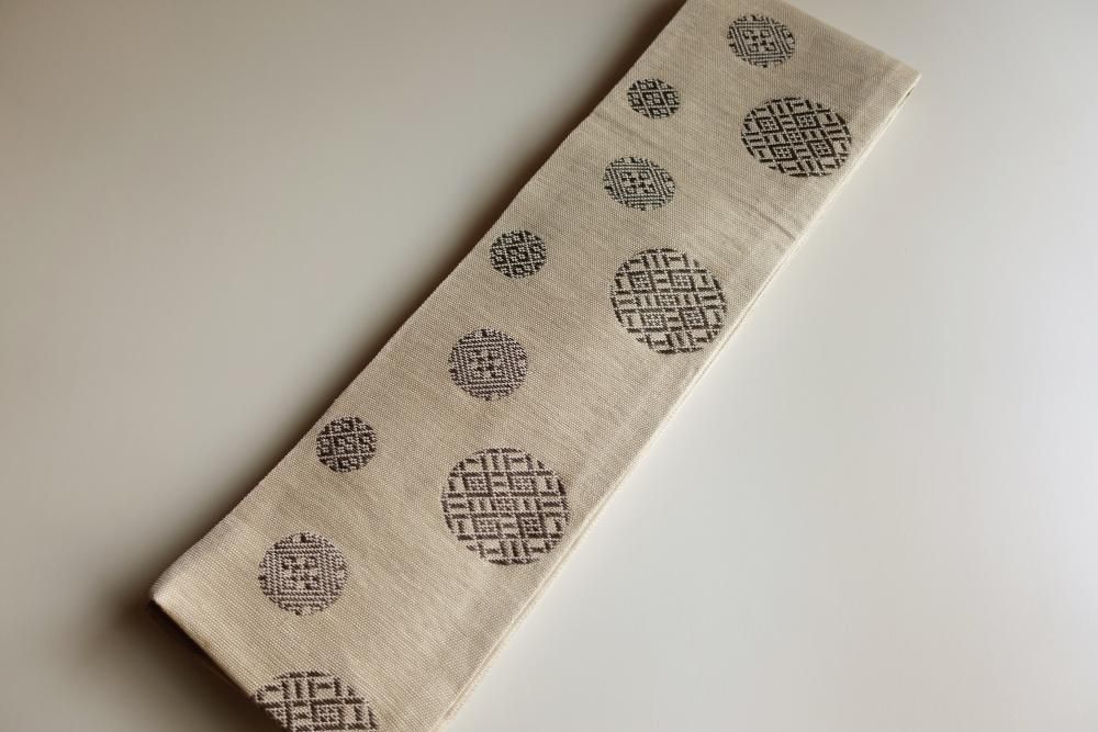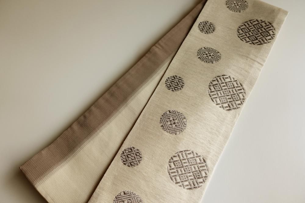 【商品名】円菱 ベージュ 紙こぎん 近賢織物 半巾帯