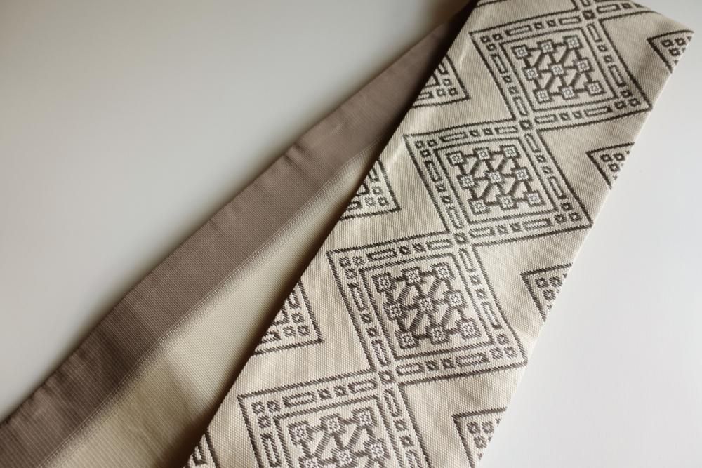 【商品名】大菱 ベージュ 近賢織物 半巾帯