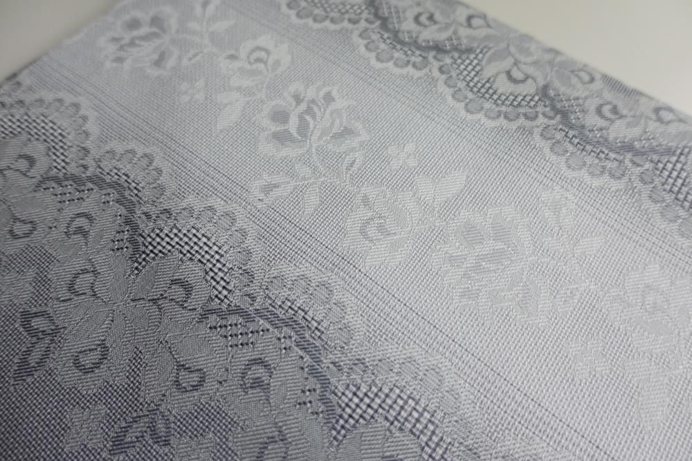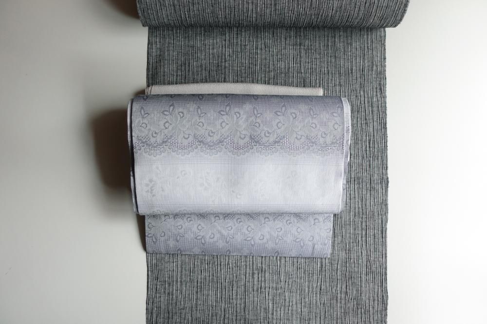 【商品名】花花 ブルーグレー 桐生織 九寸名古屋帯