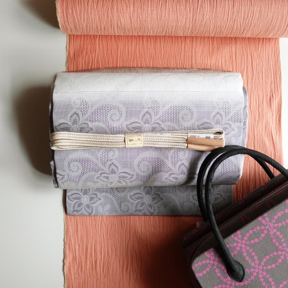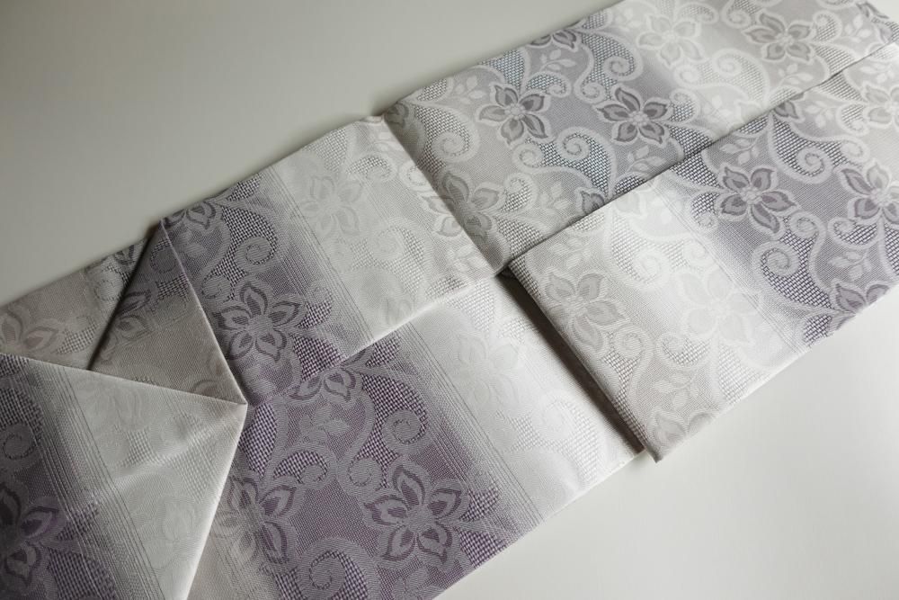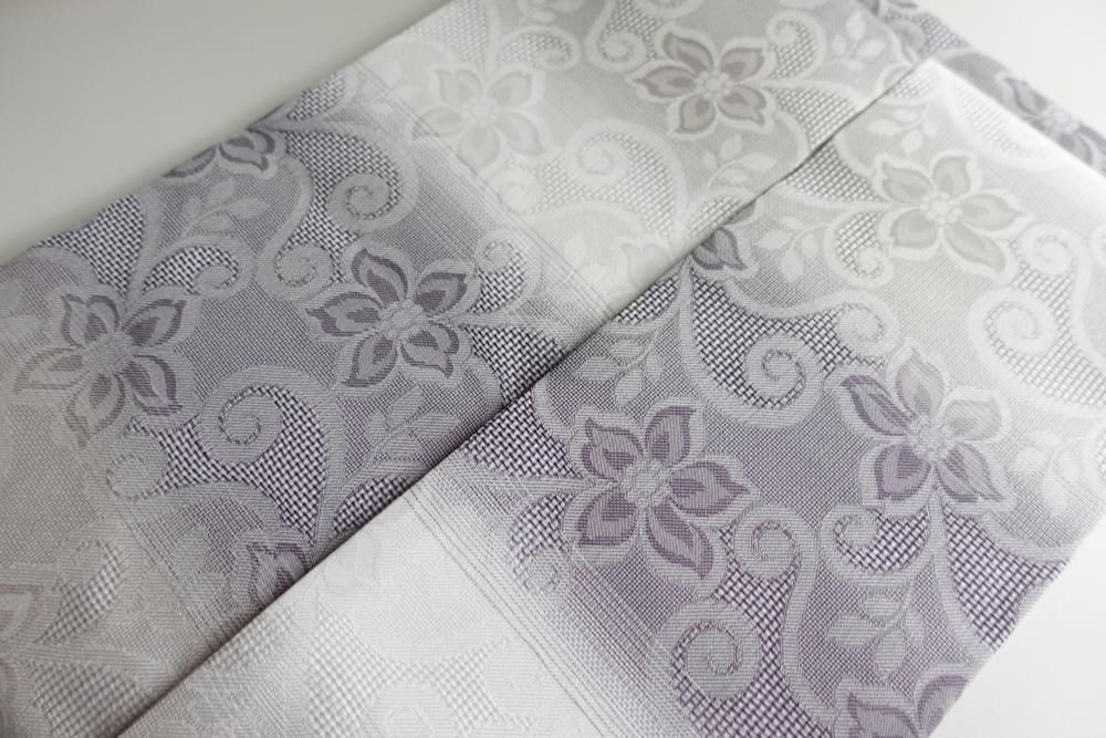 【商品名】花花 ラベンダー 桐生織 九寸名古屋帯