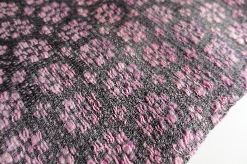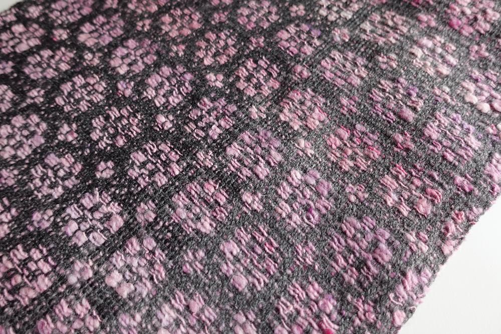 ※本製品は柔らかな羊毛を手紡ぎし、緯糸として織り込んでおります。
