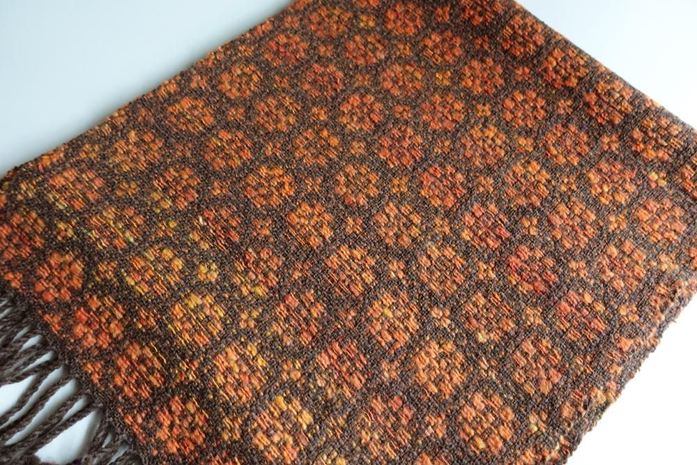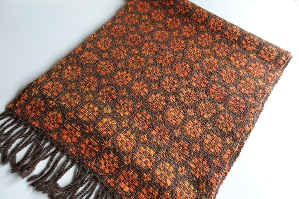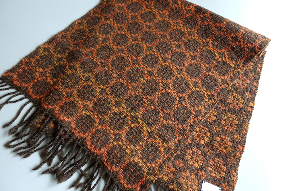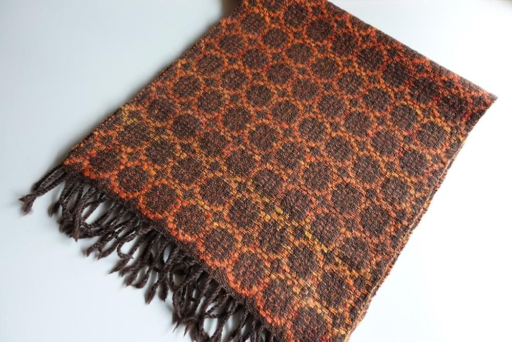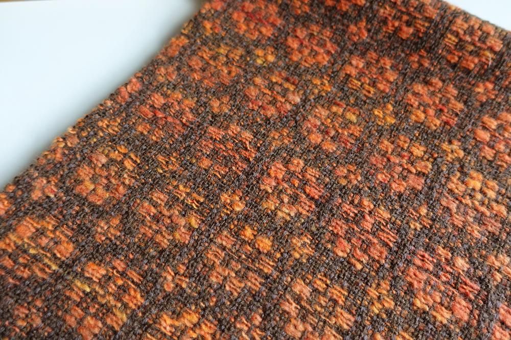 メリウールを手紡ぎした糸を使って手織りしております。